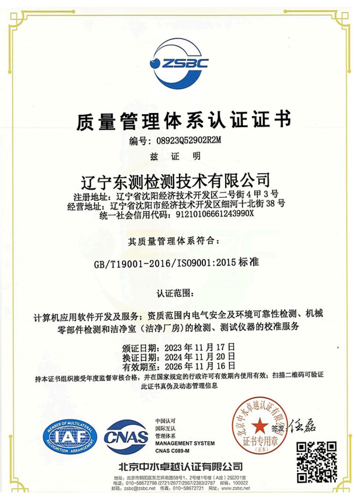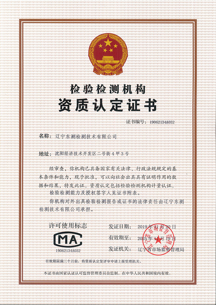 遼寧東測檢測技術有限公司成立于2007年6月21日,專注于為客戶提供計量、檢測以及技術咨詢與培訓的第三方計量檢測機構。遼寧東測檢測技術有限公司通過了中國合格評定國家認可委員會認可(CNAS),獲得檢驗檢測機構資質認定(CMA),憑借著高效的服務網絡、雄厚的技術實力以及全面的業(yè)務范圍,本著“科學、公正、準確、真誠”的質量方針,為社會提供優(yōu)質計量檢測服務,打造國內具有價值的計量技術機構。
